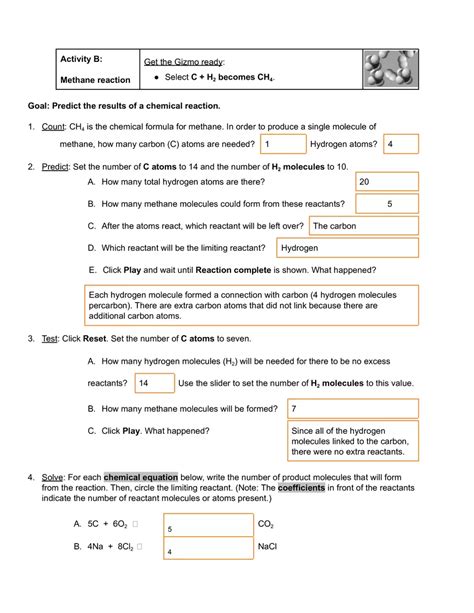 Student Exploration Limiting Reactants Gizmo Answer Key